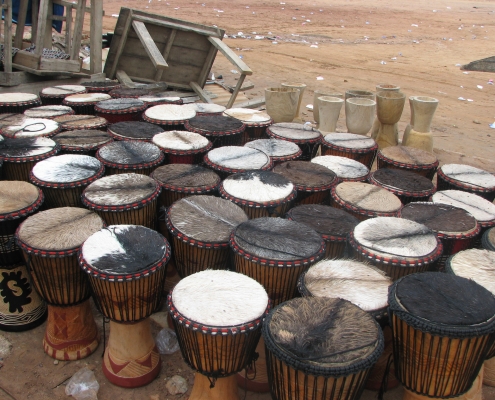 Den foerste aften sluttede hurtigt efter en oel. I dag har vi vaeret paa Karim-guidet tur. Vi har set et stoerre marked, Ghanas foerste praesidents gravsteds mindepark (en fantastisk mand), ‘Independence Square’ og den nuvaerende praesidents slot. Vi var ogsaa nede og besoege deres haandvaerkerdistrikt. De har, ifoelge Karim, saadan et distrikt i hver region i Ghana, hvor unge ghanesere bliver laert op i traditionelle ghanesiske haandvaerker og kundskaber, som f.eks. at udskaere de kendte afrikanske trommer, inklusive at spille paa dem. Naturligvis syntes Karim at vi skulle moede nogle af hans venner, det var super hyggeligt; pludselig hiver de trommer frem og giver os en god lille trommekoncert. Bagefter faar vi begge smaakket en tromme mellem benene, og saa er der ellers musiktime! Det lykkedes dem at laere os at holde en kort rytme, (efter de havde grinet af os og rystet paa hovedet af de tossede rytmeloese danskere,) og for pokker hvor var vi stolte af os selv. Vi fik ogsaa laert den specielle haandtegnshilsen som Karim og hans venner bruger, hvilket indeholder dobbelt haandtryk og knips. Til gengaeld laerte jeg Karim den hilsen vi bruger i Koege, og der var en kort, men god diskussion om brugen af haandtegnshilsener i vennekredse.