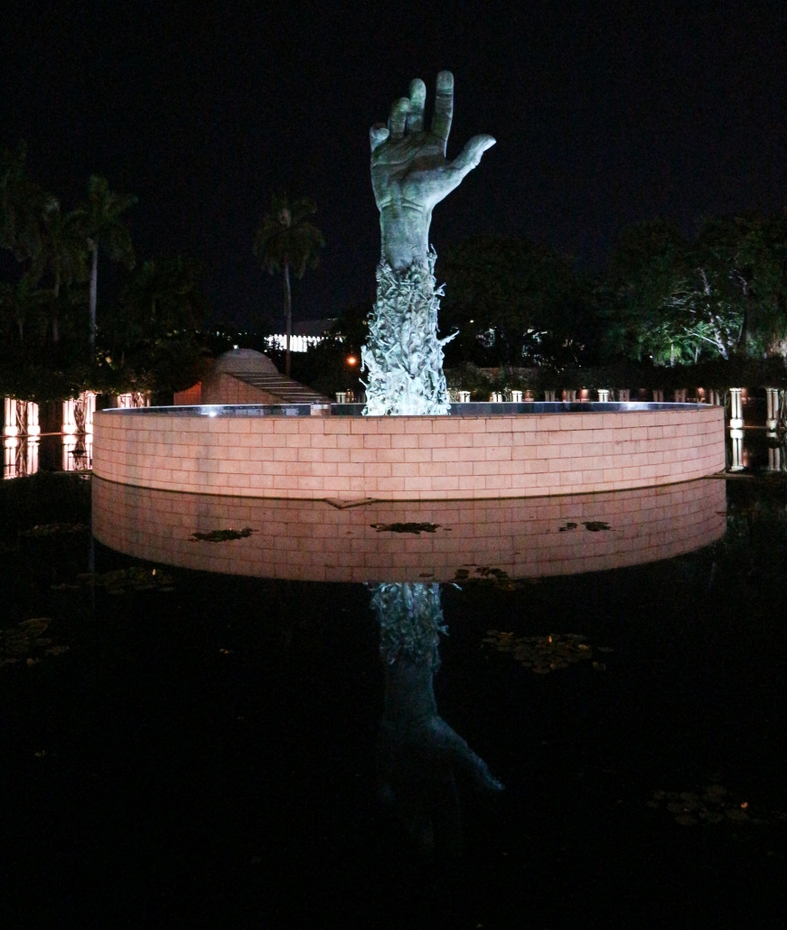 Miami er sol, sommer, ferie og glade dage. Og så pludselig, midt i det hele, oplyst i mørket af projektører, står der en stor hånd og tvinger én ned på jorden igen. Hånden er en del af Holocaust Memorial, et mindesmærke skabt af overlevende fra Holocaust.